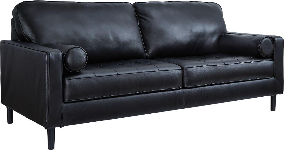 This sofa embodies timeless mid-century elegance with its linear design, sleek track arms and tapered legs. Genuine leather in the seating area adds a luxurious touch to the overall look. Experience endless style opportunities for today's living spaces.Read More