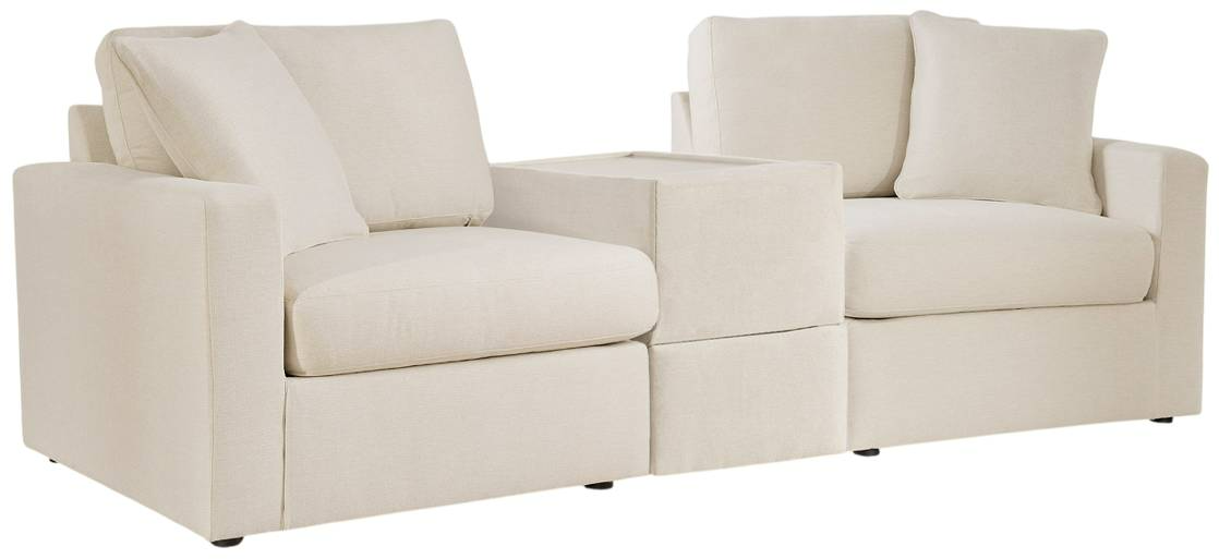 Includes 3 Modular Pieces: Left-arm facing corner chair, console with storage, and right-arm facing corner chair