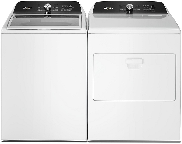 Whirlpool® White Top Load Laundry Pair with a 5.3 cu. ft. capacity top load washer and a 7 cu. ft. capacity front load gas dryerRead More